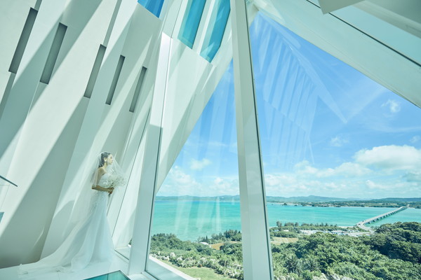 この地に宿る神々の力と壮大な自然、本物の蒼を映す白亜のチャペルが撮影の舞台。空と海のブルーにつながるように伸びるガラスのバージンロードに、絶景を前に誓う永遠の愛。特別な一日に描くシーンのすべてに、古宇利島の大自然が寄り添います。